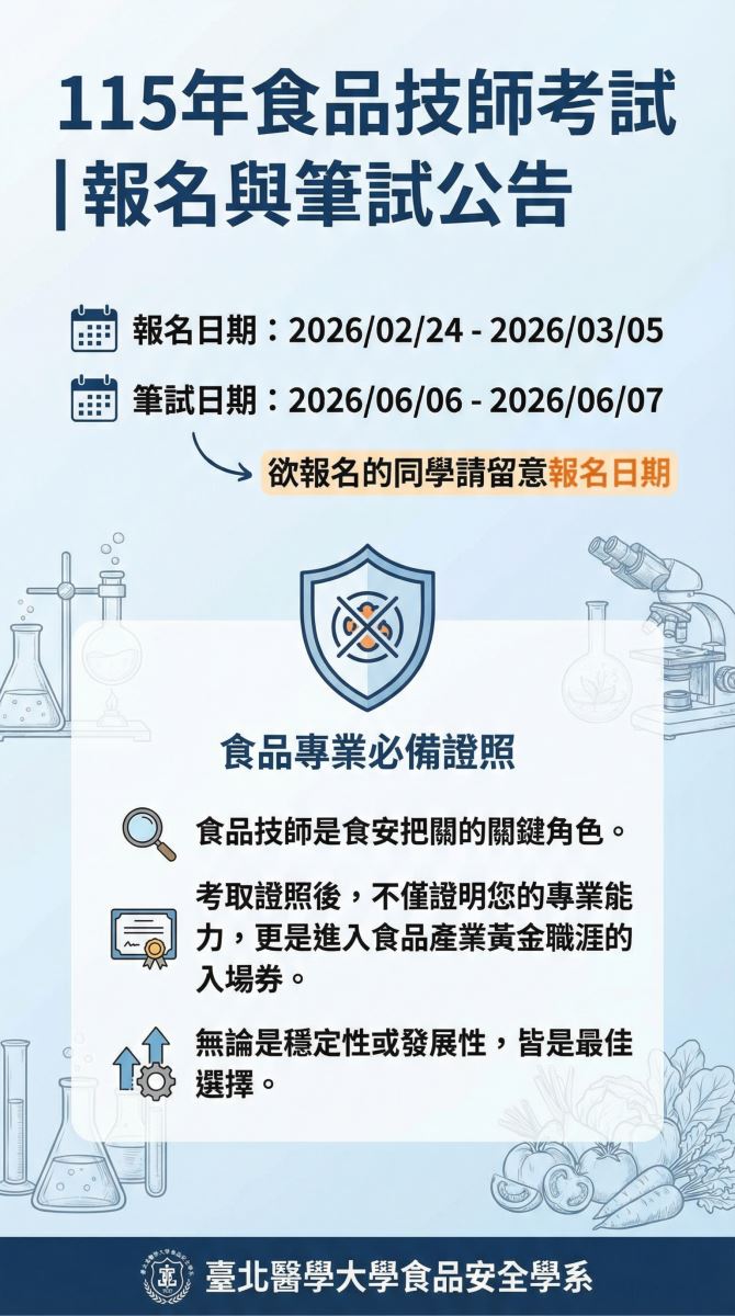 115年食品技師考試|報名與筆試公告